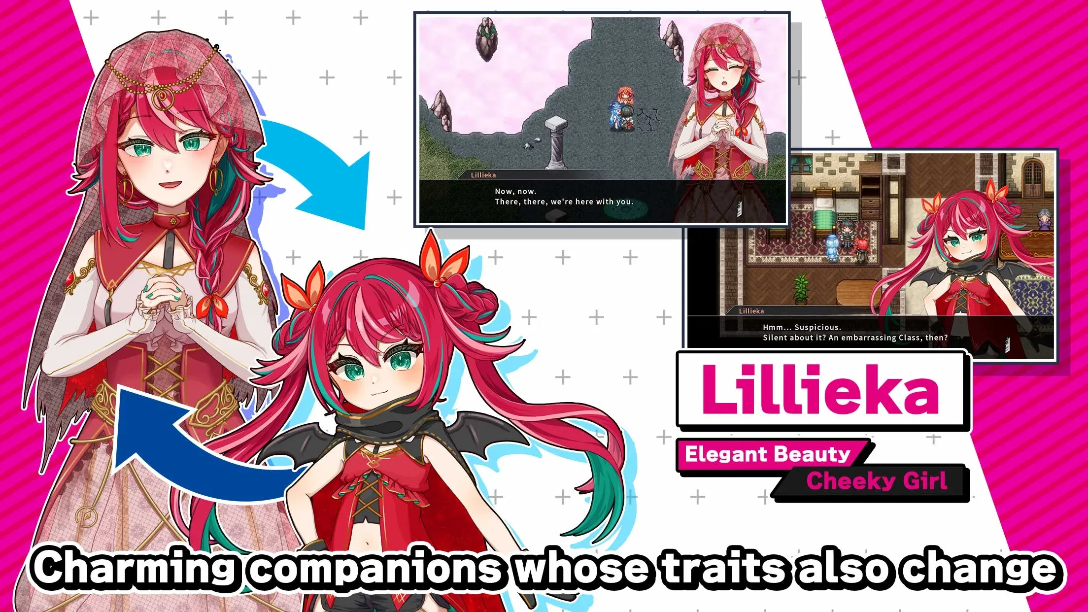 Alter your team in turn-based battles between adult and child states to alternate between attack or support types! Utilize a wide range of formations and elements, including equipment and passive skills, to strategically navigate battles.