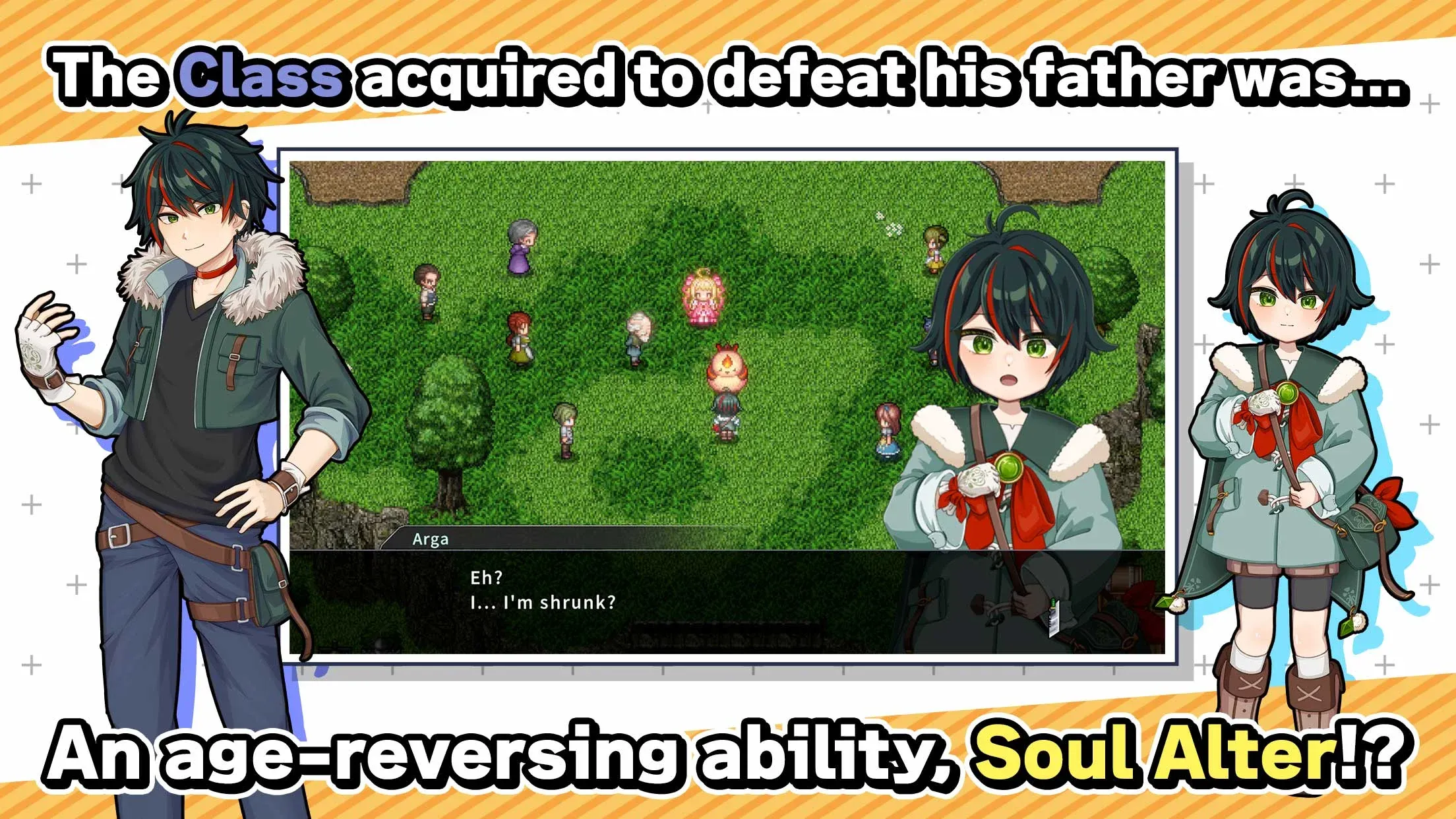 Arga has been training daily to prove himself superior to his father, who holds the title of the strongest man in the world. During this process, he awakened the job “Soul Alter,” a unique skill that changes the states of himself and his companions between adult and child. Sometimes a young man, sometimes a boy, he faces great trials with his companions.