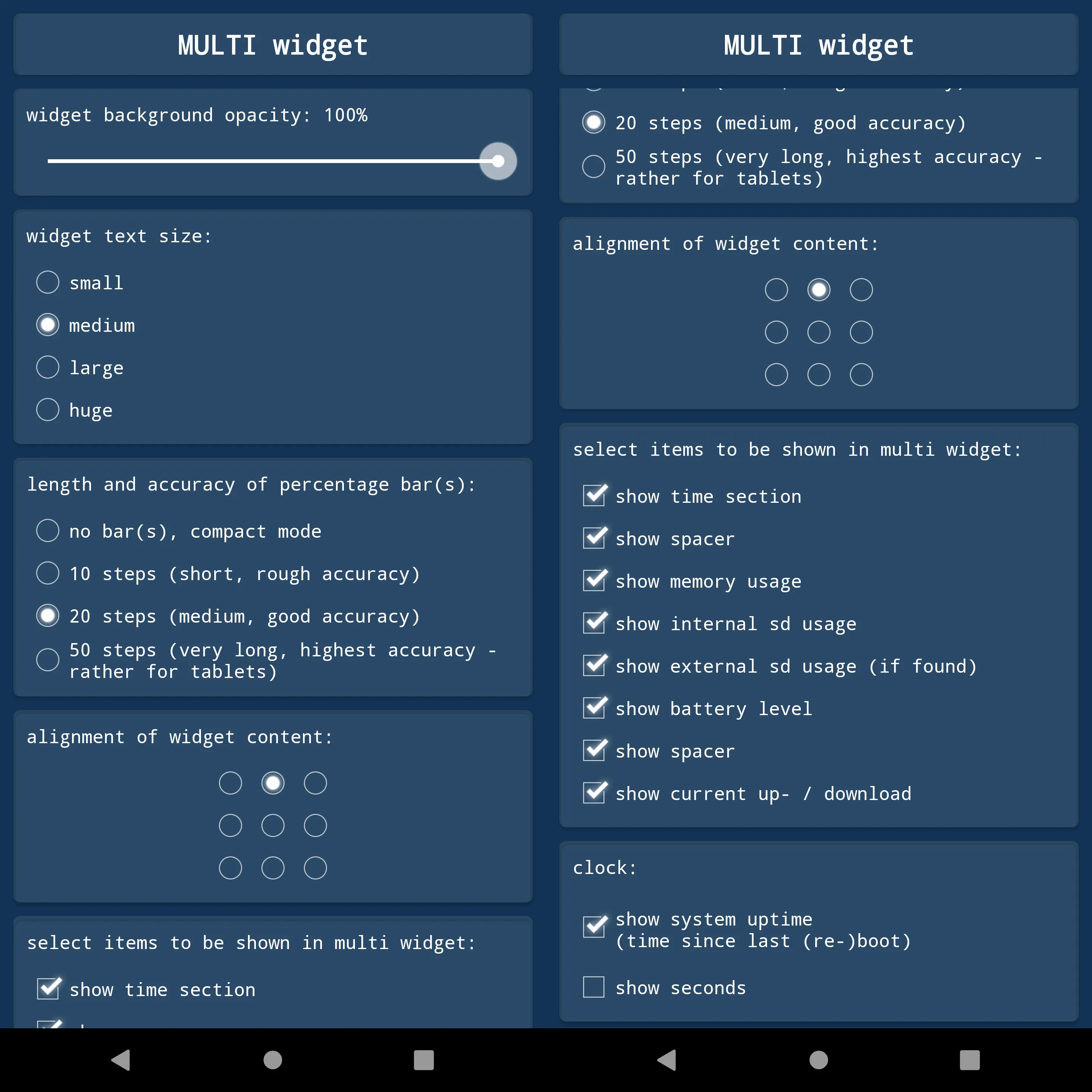 •alignment of widget content (you can more precisely adjust the alignment on the screen)