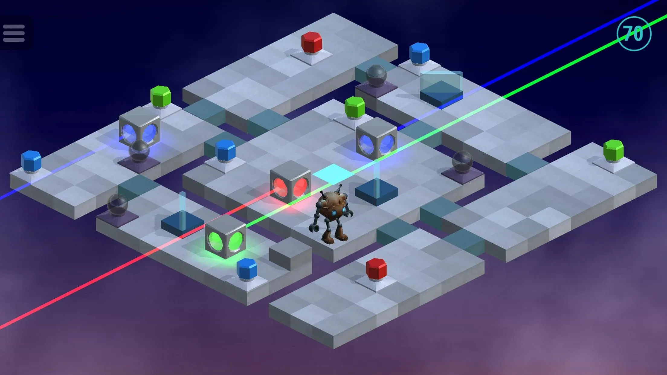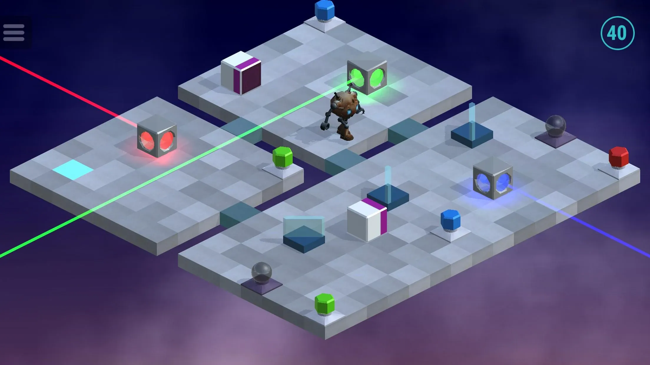 You’ll need to think ahead and use creativity to work out which objects to use, and where to use them. Starting out very simple, the puzzles become increasingly difficult and more complex. Multiple lasers, multiple targets, portals, mirrors, beam splitters and more will all be required.