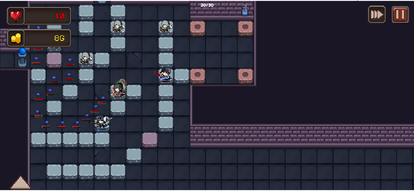 Become the master of your dungeon and create your unique strategic dungeon! When the game starts, players can freely place walls to build their unique dungeon. You must block the enemies that follow the paths created by these walls. How many enemies can your dungeon hold back?