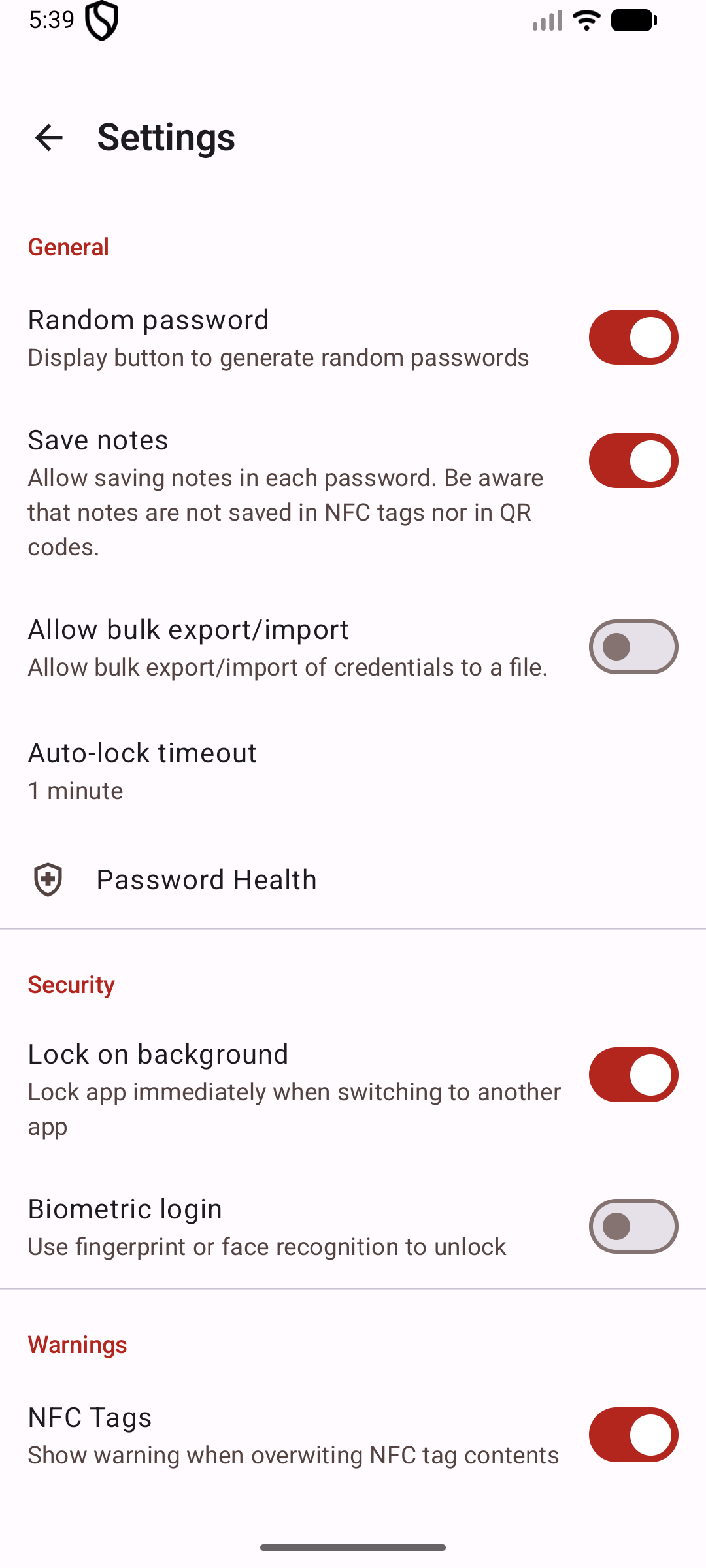 • Biometric — only if you enable fingerprint unlock
