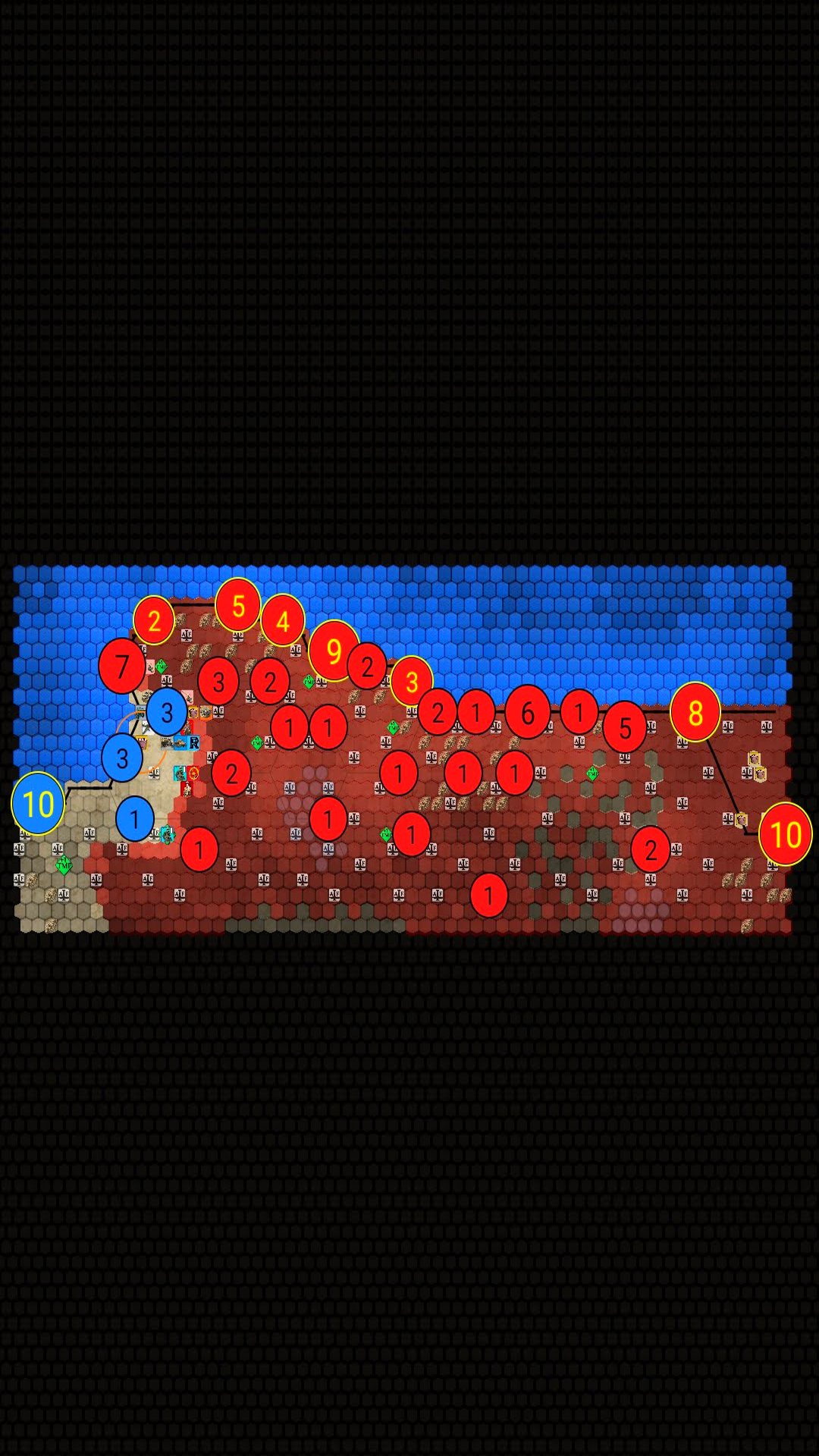 + Settings: A long list of options available to alter the look of the gaming experience: Change difficulty level, hexagon size, turn some resources OFF, Animation speed, choose icon set for units (NATO or REAL) and cities (Round, Shield, Square, block of houses), decide what is drawn on the map, and much more.
