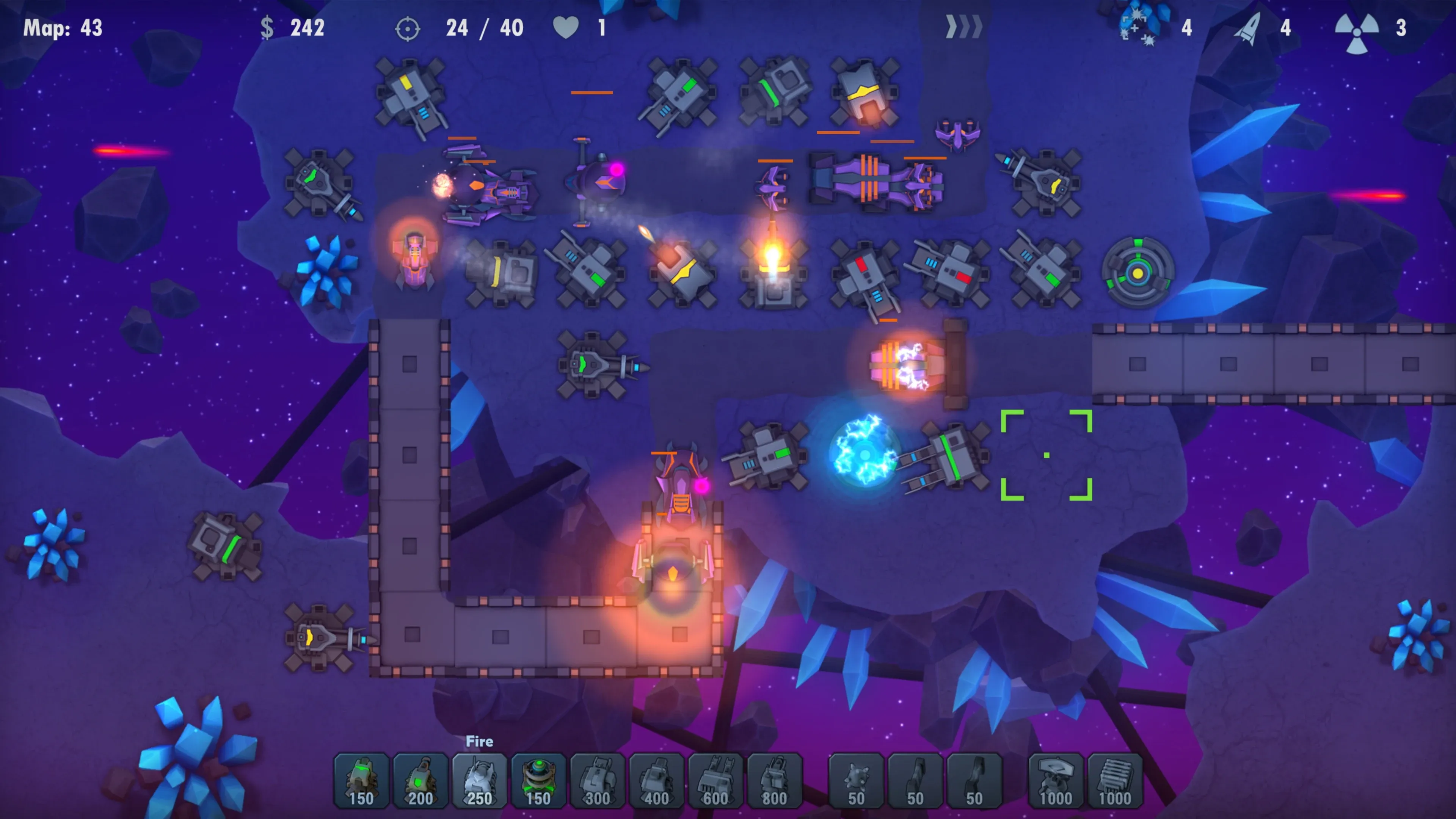 But Starfall Defenders offers more than just placing, upgrading, and selling towers. Players can also improve their gameplay by placing mines, blocking walls and electric fields directly on the path, and taking control of a tower’s direction and target. This player-controlled action is a unique feature within a defense game that allows players to directly hit their enemies.