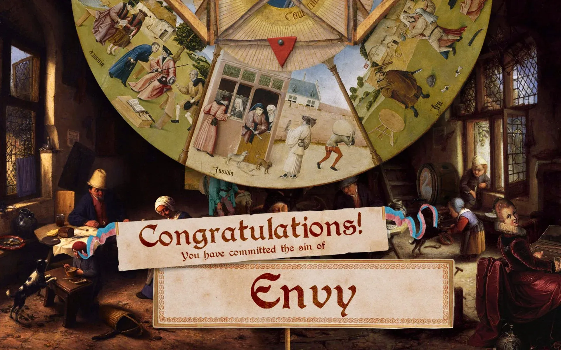 Pilfer from poets, bargain with bishops and serenade the local simpleton on you hapless quest for absolution. Four Last Things is a point-and-click adventure game made from Renaissance-era paintings.