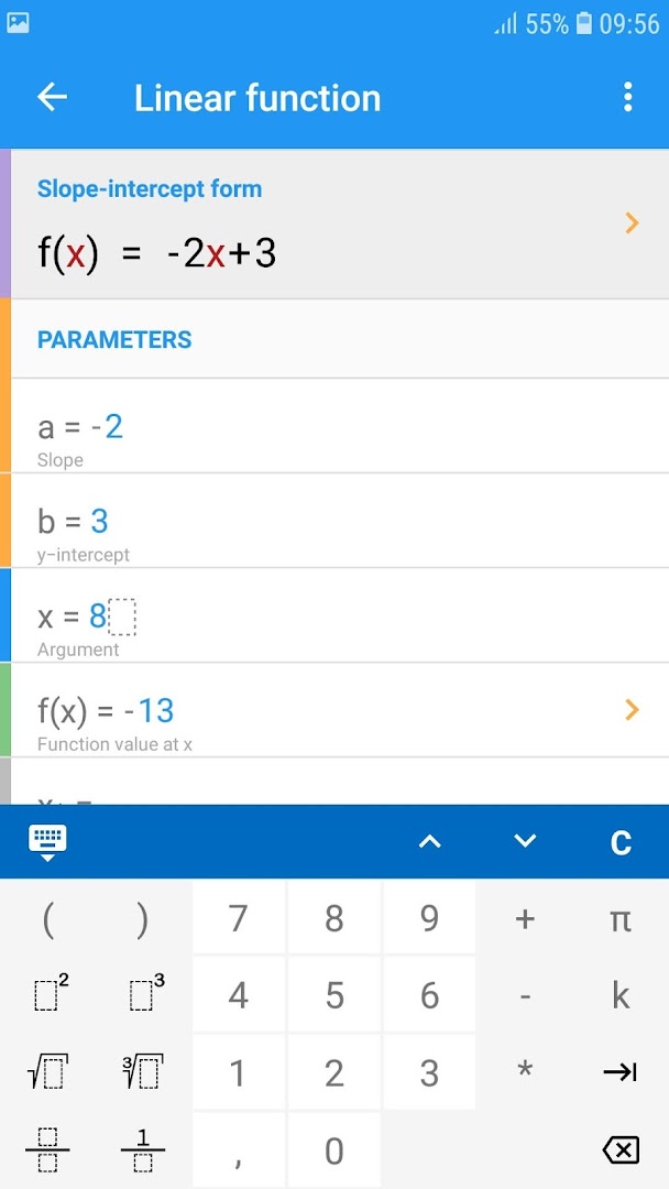 This app includes a lot of mathematics topics such as geometry, equations, and inequalities, quadratic function, linear function, linear system, circle equation, math sequences, algebra, vectors.