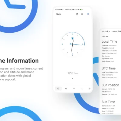 Compass provides info related to direction using Geomagnetic field, Clock fetches the time related information based on the current location, time zone and also sun’s information like Sunset, Sunrise, Twilight and many other info while the level can be used to get the plain deviation info and for many other purposes. Trail can be used for marking locations on the map and create a travel journal anywhere on the map using many contextual icons.