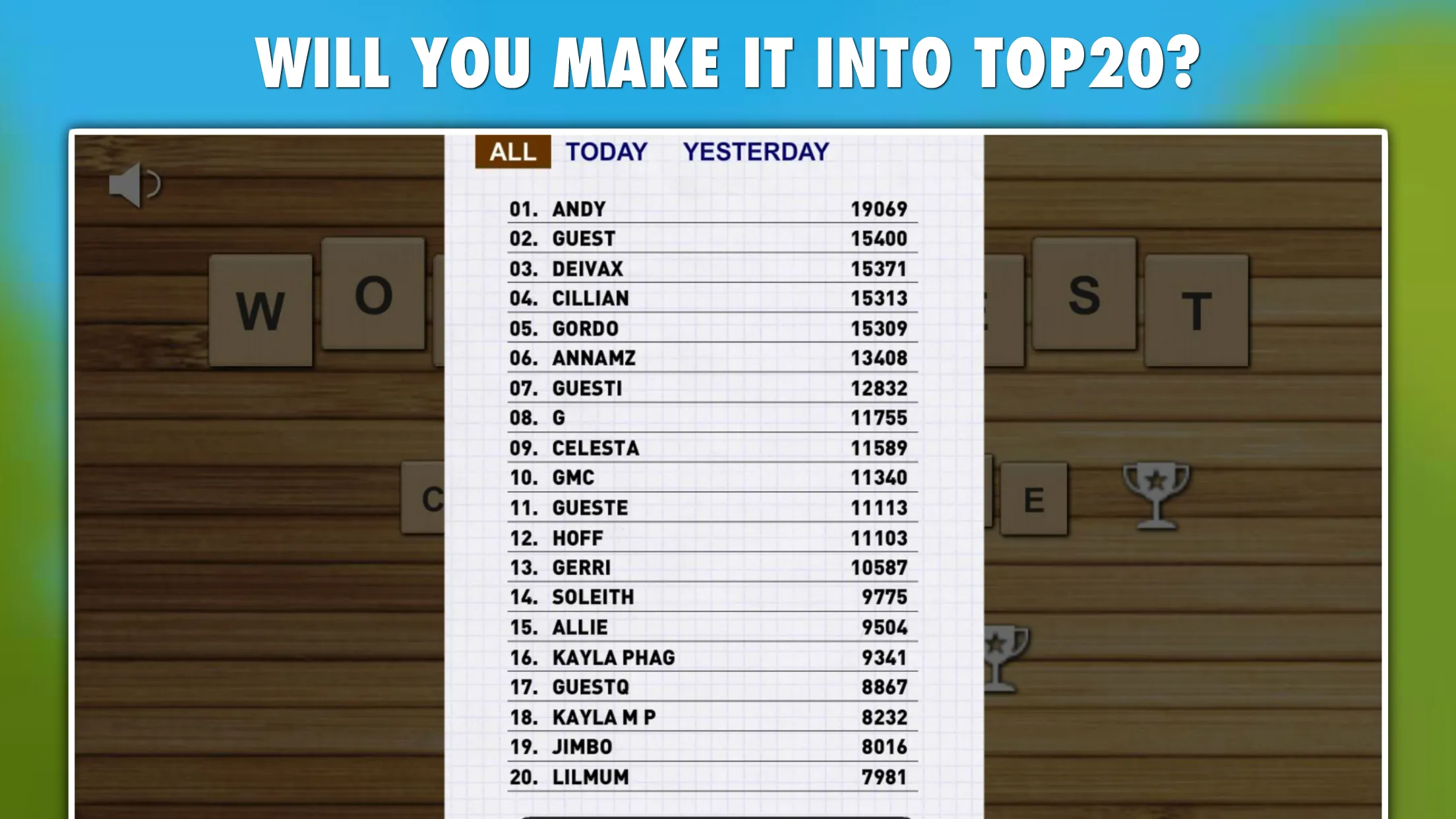 Choose your letters or rely on luck! With letters at hand create as many unique English words as you can within 90 seconds or play a relaxed mode with no time limit!